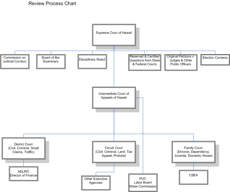 The Supreme Court of the State of Hawai`i is the State’s court of last resort. The Supreme Court hears appeals that are properly brought before the court upon applications for writs of certiorari to the Intermediate Court of Appeals, designated direct appeals from agency decisions, and applications for transfer from the Intermediate Court of Appeals.