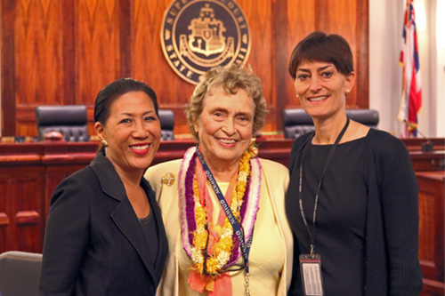 Beadie Kanahele Dawson, Esq. (center), with the Hawaii State Judiciary Center for Alternative Dispute Resolution’s Director, Cecelia Chang (left), and Research Analyst, Anne Marie Smoke (right).