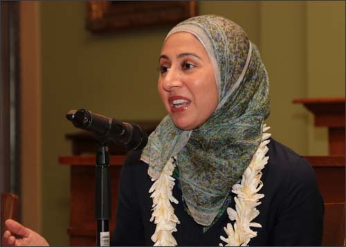 Khalid, a Muslim whose grandparents emigrated to Chicago from Pakistan, grew up in the Midwest. She said that before Donald Trump became the Republican Party’s nominee for President, she had already agreed to cover the presidential campaign focusing on where “demographics and politics” intersected. After the election, she told her own story, “What It Was Like to Cover the Election as a Muslim,” describing experiences with people from all walks of life, including her fellow journalists. Her life experiences, especially her time traveling the country, reinforced her belief in the importance of advancing civil liberties. “It’s a dereliction of duty to sit on the sidelines,” she said.