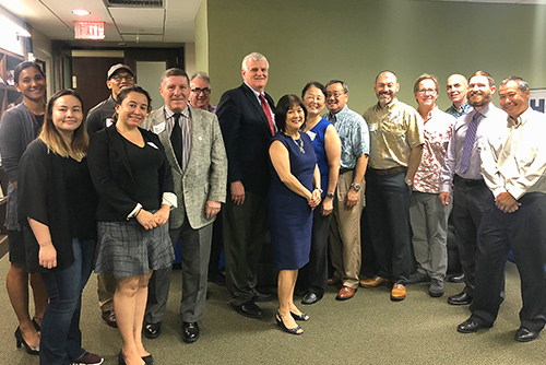 Attorneys who volunteer at the Honolulu District Court Access to Justice Room and Chief Justice Mark E. Recktenwald (center) during a recent gathering. The event was organized and sponsored by the Legal Aid Society of Hawaii and the Hawaii State Bar Association.