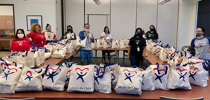 CASA program staff stands ready to deliver their “Aloha WE Care” packages to support foster care children and families during the COVID-19 pandemic.