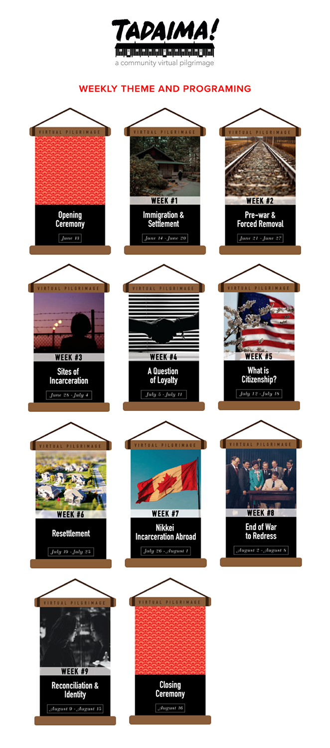 Posted on Jun 24, 2020 in Featured News, News & ReportsIn the midst of the ongoing COVID-19 pandemic, annual pilgrimages to sites of wartime Japanese American incarceration have been canceled. These pilgrimages provide important educational and community-building opportunities for descendants of those held at the camps, the Japanese American community as a whole, and the wider public. Recognizing the ongoing significance of these pilgrimages, the National Park Service and Japanese American Memorial Pilgrimages have created Tadaima! A Community Virtual Pilgrimage, which takes place from June 13–August 16, 2020. The project is hosted on the Japanese American Memorial Pilgrimages’ website and features different live presentations and pre-recorded short films.