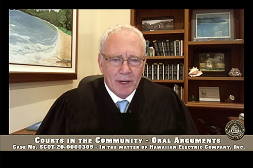 HONOLULU – The Hawaii Supreme Court convened May 7, by Zoom, giving more than 110 students on three islands the opportunity to view oral argument in an actual case. Participating schools were Konawaena High School on Hawaii island, Lahainaluna High School on Maui, and Waipahu High School on Oahu.