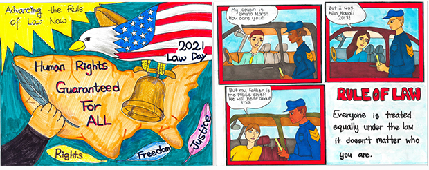 The First Circuit Court celebrated Law Day 2021 by inviting all Oahu students in grades 3 to 8 to showcase their creativity and talent with artistic interpretations of the Law Day theme: Advancing the Rule of Law Now. A total of 195 entries were received from 26 schools.