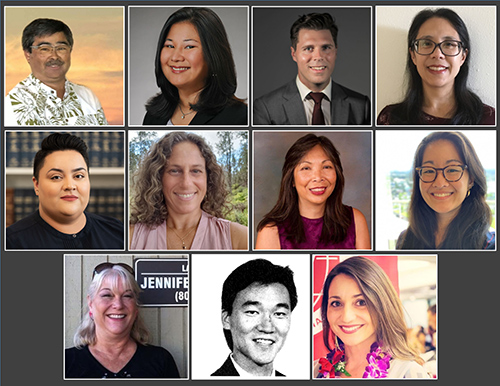 The attorneys honored for their service in 2020 are: Kimberly Angay, Belinda Castillo-Hughes, Paul Hamano, Jill Hasegawa, Raymond Hasegawa, William Heflin, Charles Hite, Ha’aheo Kaho’ohalahala, Jo Kim, Nelson Kinoshita, Laura Knudsen, Al Konishi, Demetri Lametti, Shaunda Liu, Craig Masuda, Kai McGuire, Jacky Mena, Jeffrey Ng, Michelle Oishi, Melody Parker, Jill Raznov, Joy San Buenaventura, Scott Shishido, Evans Smith, Andrew Son, Roland Talon, Jessica “Jaycee” Uchida, Sylvia Wan, Jennifer Wharton, J Yoshimoto, and Jennifer Zelko-Schlueter.