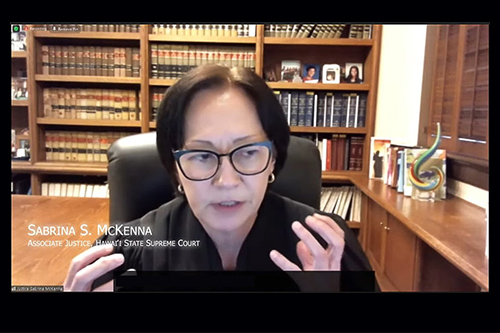 Hawaii Supreme Court Associate Justice Sabrina S. McKenna poses a question to one of the attorneys during oral argument.