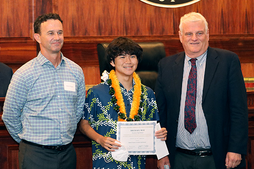 From left: Attorney Blaine Rogers of the Davis Levin Livingston law firm, Michael May of Punahou School, and Chief Justice Mark E. Recktenwald.