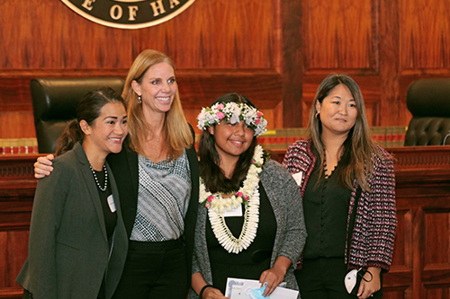 From left: Attorney Katherine Lukela, Hawaii State Bar Association President Shannon Sheldon, Shandette Namulauti of Nanakuli High & Intermediate School, and Erin Kobayashi.