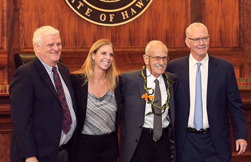 From left: Hawaii Supreme Court Chief Justice Mark E. Recktenwald, Hawaii State Bar Association President Shannon Sheldon, Honolulu attorney William C. Darrah, and Hawaii Supreme Court Associate Justice Michael Wilson. Darrah was selected by the Hawaii State Bar Association to receive their 2022 Pro Bono Award for his dedication to helping the public and improving court procedures.