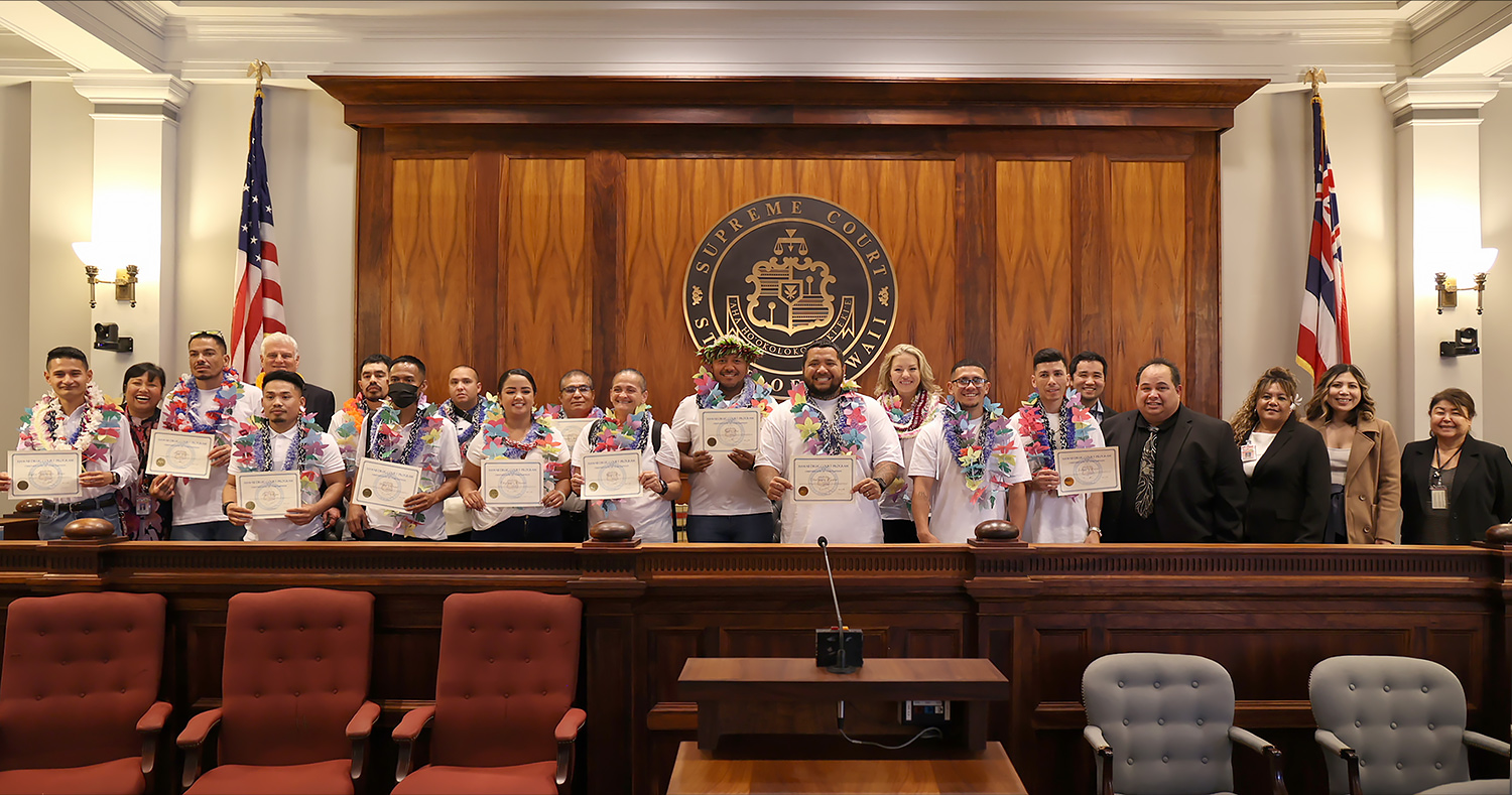 HONOLULU — The First Circuit Drug Court recognized 14 graduates at its 86th Commencement Ceremony on March 8 in the Supreme Court courtroom in Aliʻiōlani Hale for successfully fulfilling the program requirements. Family, friends, dignitaries and special guests attended the ceremony to recognize the graduating class’ achievements.