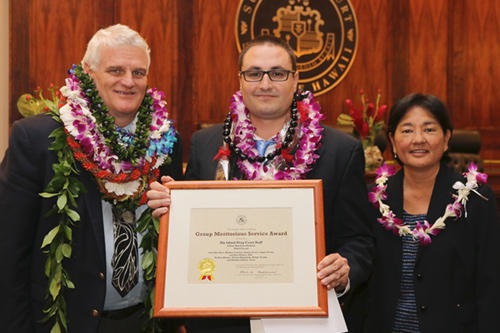 Group Meritorious Service Award:  Third Circuit (Hawaii Island) Drug Court Staff: Hilo Office – Pagan Devela, Gabrielle Chow, Marlyce Correira, Keri Kimura, and Dustin Cueva; Kona Office – Yvonne Keanaaina, Wendy Terada, Rodney Branco, and Daralyn Kimiye Villesca.