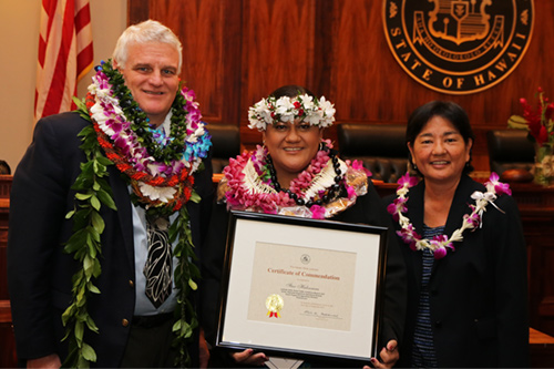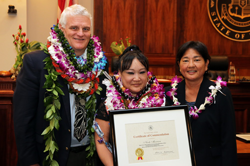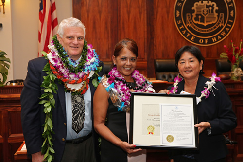 Group Certificate of Commendation:  Administration Fiscal Office: Tracy Chan, Accountant; Myrna Fong, Account Clerk; and Noreen Miyasato, Account Clerk; and Third Circuit (Hawaii Island) Judicial Clerks, Client Services Division, Juvenile Services Branch, Clerical Section, Hilo Office – JoAnn Hirako, Supervisor; Katherine-Anne Schubert, Tammi Mansinon, Tiana Akiu; and Kona Office – Leah Anu Morimoto.