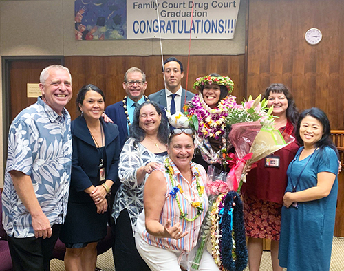 The following were recognized for the important roles they play in the program’s success: Marsha Yamada, Deputy Chief Court Administrator; Meridith Russell, Juvenile Client & Family Services Branch Supervisor and all of the JCSFB’s probation and intake officers; Kawika Ortiz, Social Worker, with the Special Services Branch; Malia Ferreira, Court Clerk and Bailiff Supervisor; Court Clerks Alicia Allagonez, Bernie Cummings, Virginia Freitas, and Michelle Cabaccang; Volunteer/Law Intern Kaleileihua Cabanes; Ed Menor Deputy Attorney General; Samuel August, Deputy Public Defender; Leslie Armstrong, CWS Supervisor; Lisa Leval, Guardian Ad Litem; Kai DuPonte, Court Appointed Special Advocate; Ann Van Patten, Aloha House, IFT Supervisor; IFT Therapists Jule Kean, Shelly Brown & Ariell Nash; Lisa Ponichtera, Malama Clinical Director; Serlinda Soukon, Malama Counselor; Geoff Kirkland and Shelle Kuanono, Aloha House Program Directors; Stacy Moniz, Maui Farm Director; Parents and Children Together (PACT), and Women Helping Women.