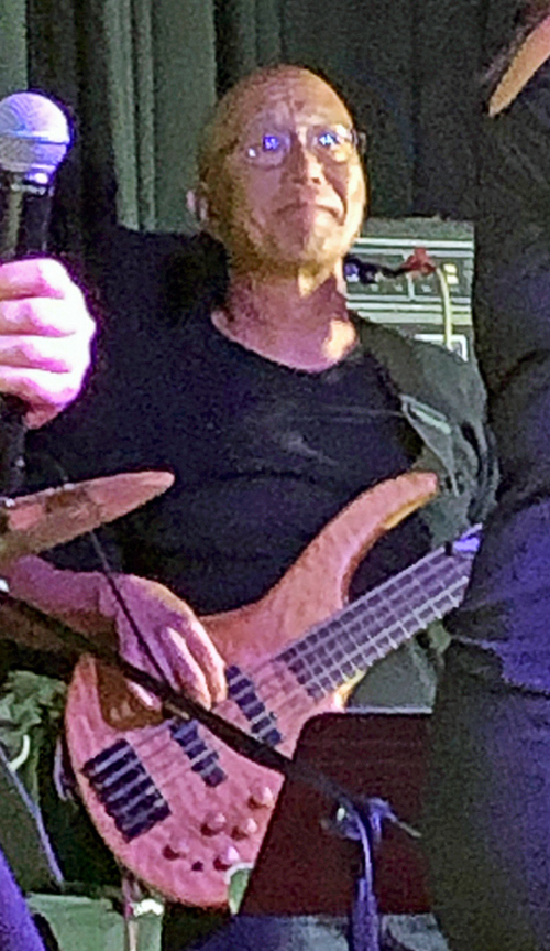 Intermediate Court of Appeals Associate Judge Keith Hiraoka plays bass guitar at Rock for Justice 2022.