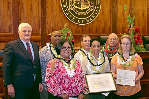 Group Meritorious Service Award: First Circuit (Oʻahu) Truancy Court & Early Education Intervention Program: Social Workers Anthony Cannon, Garrett Alcott, Letty Di Lillo, Billie Reeves, Blaine Tomita, Roberta Uemura.
